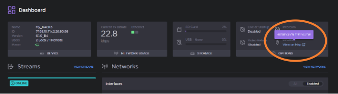 When the option is enabled, you can check the location information of the device either from the Unit Panel or from the Web Interface.