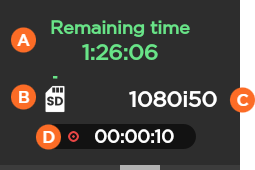 Remaining recording time possible on SD card Space used on SD Source Standard Record Duration