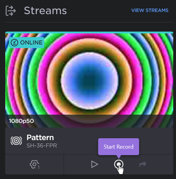 On the Dashboard, in the Streams section, click the icon to check that the unit settings are configured and selected as required: