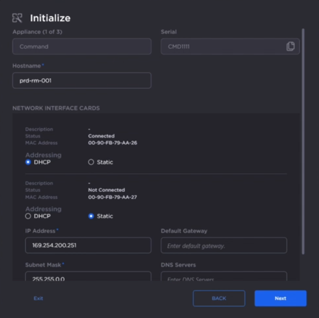 If the appliances you wish to initialize do not appear in the list at first, click Refresh to search again.