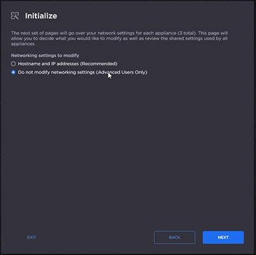 Under "Network settings to modify," select either Hostnames and IP Addresses (Recommended) or Do not modify networking settings (Advanced Users Only).