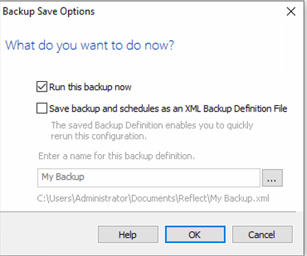 Uncheck the Save backup and schedules as an XML Backup Definition file option.
