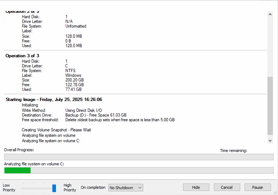 Macrium will now create a backup, this may take up to 20 minutes.