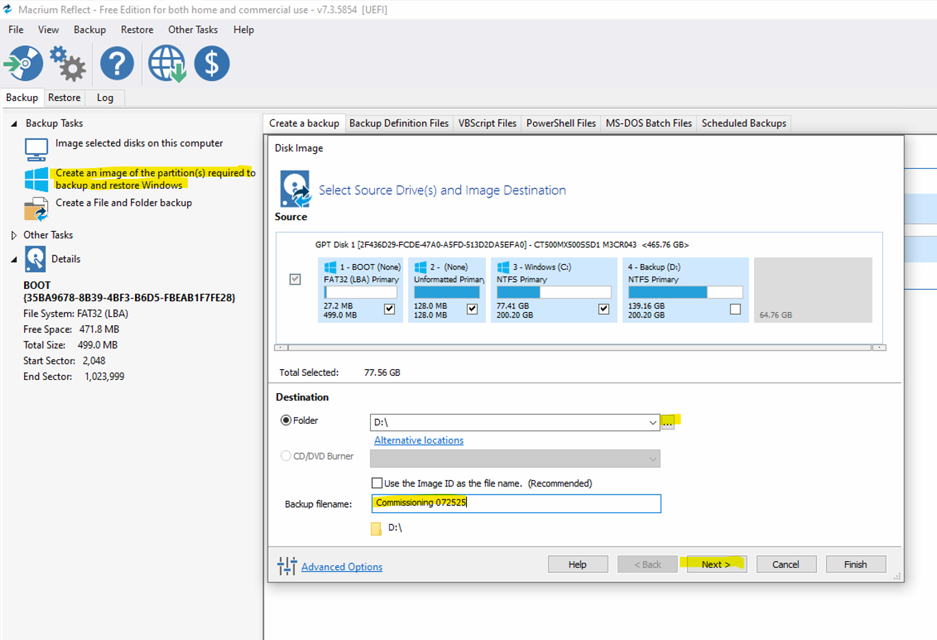 To create a Macrium backup: