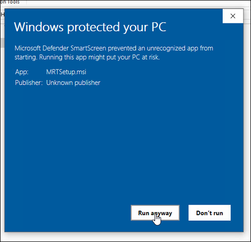 If a Windows Defender prompt appears, click Run anyway.