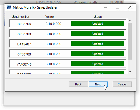 Review the cards to be updated and click Next.