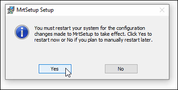 After the new driver package is downloaded, unzip it and run MRTSetup using all default options: