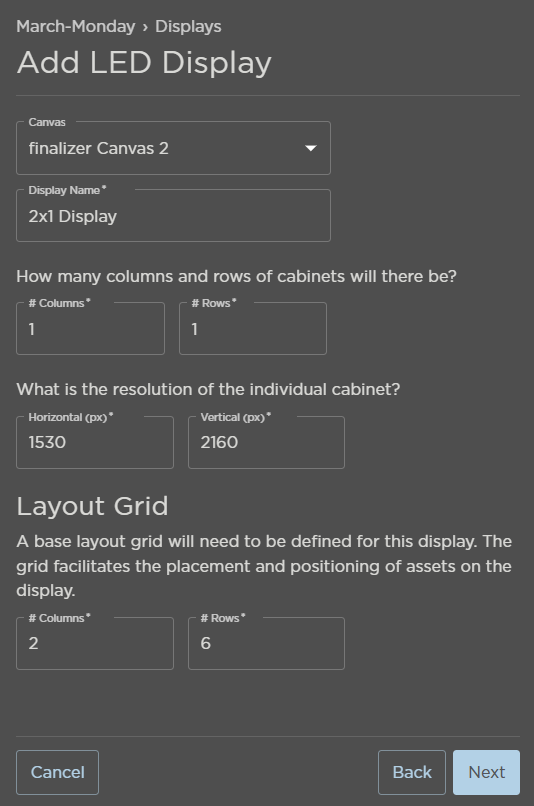 Enter the Horizontal and Vertical Resolution of the individual cabinet.