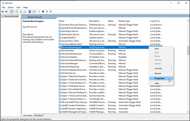 Right click HaivisionBootstrapper and select Properties.