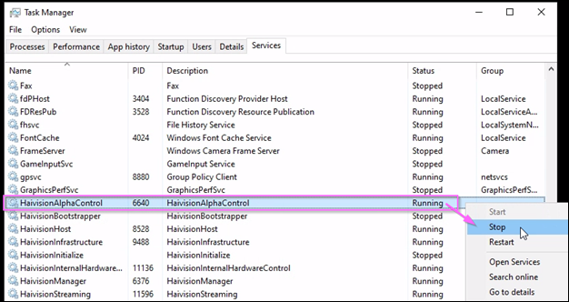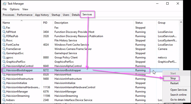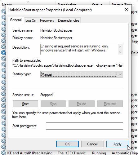 HaivisionBootstrapper must be set to start manually so it will prevent services from restarting after a reboot.