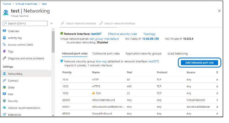 In the left pane of your Virtual Machine, under Settings click Networking.