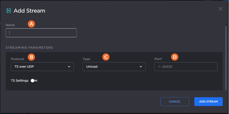 In the Add Stream dialog: