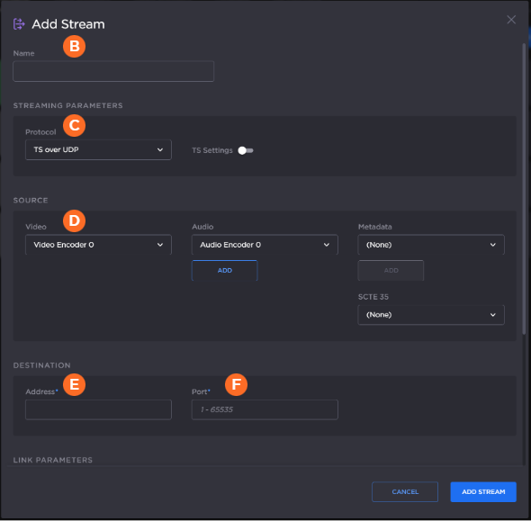 In the Add Stream dialog:
