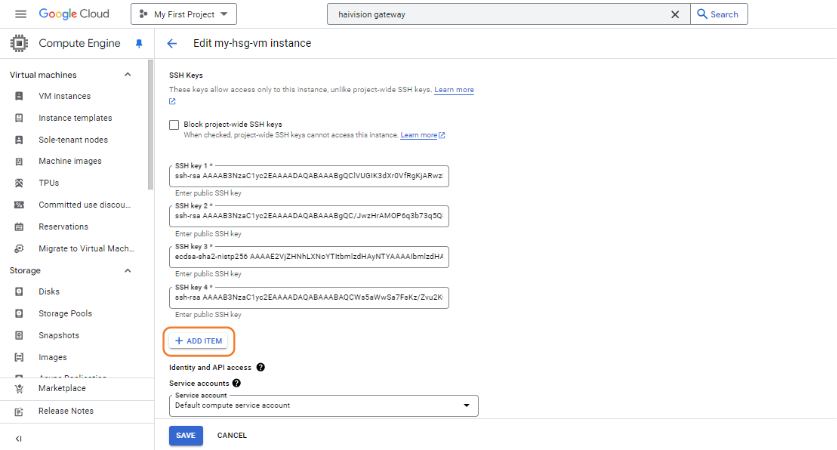 Paste the SSH public key and click the Save button.
