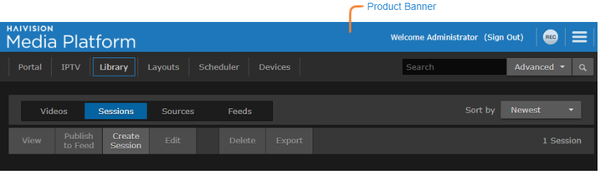 After you have successfully signed in, the Web interface opens with your account information displayed in the product banner.