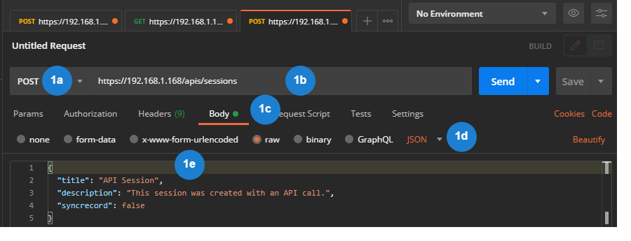 To access the API commands, you must first login and obtain a session cookie (or an authorization token if an IDP user is executing API requests). This cookie or token must be included in the header of all subsequent API commands, which Postman does automatically. This example demonstrates the use case for a local user utilizing a session cookie, instead of IDP user using the Bearer authorization token.