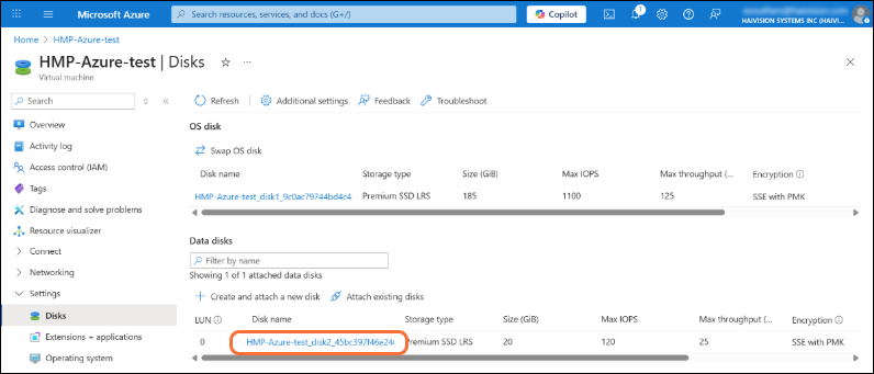 partition is configured with a capacity of 20 GB. This disk is used to store HMP stream recordings and to manage software updates, including the upload and extraction of update bundles. If the disk begins to run low on available space, you may expand the size of this disk: