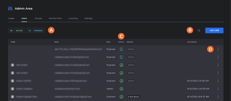 The Users tab allows admins to view and manage users in the organization.