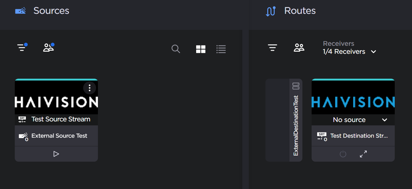 In the Master Control screen, each external SRT stream can only be routed to one appliance managed by Hub 360.