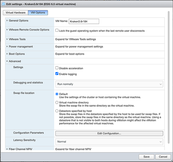Select the Kraken VM and then select Actions→Edit Settings→VM Options.