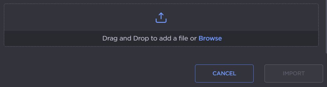 ClickImportand drag and drop or browse to select the file.