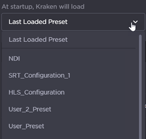 To select an existing preset to load at startup, select a preset from the dropdown menu.