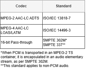 Consult the following table for detailed audio encoding specifications.