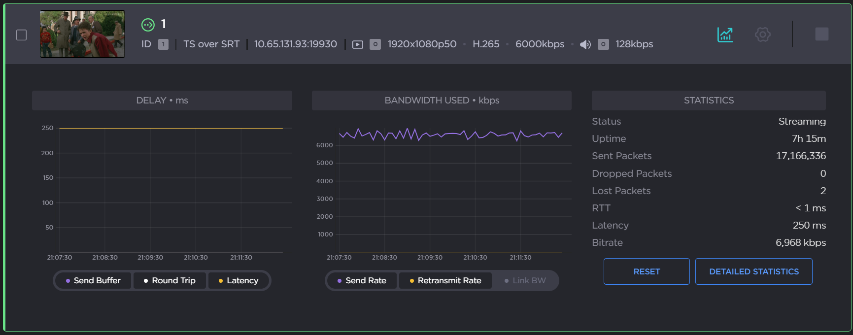 on the Stream panel to see how the SRT streams are performing.