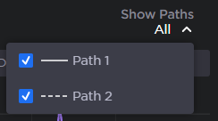 Select which path (or both) to display from the Show Paths dropdown (path redundancy must be enabled).