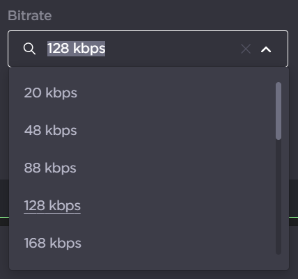Select the Bitrate (in kbps) from the dropdown menu.