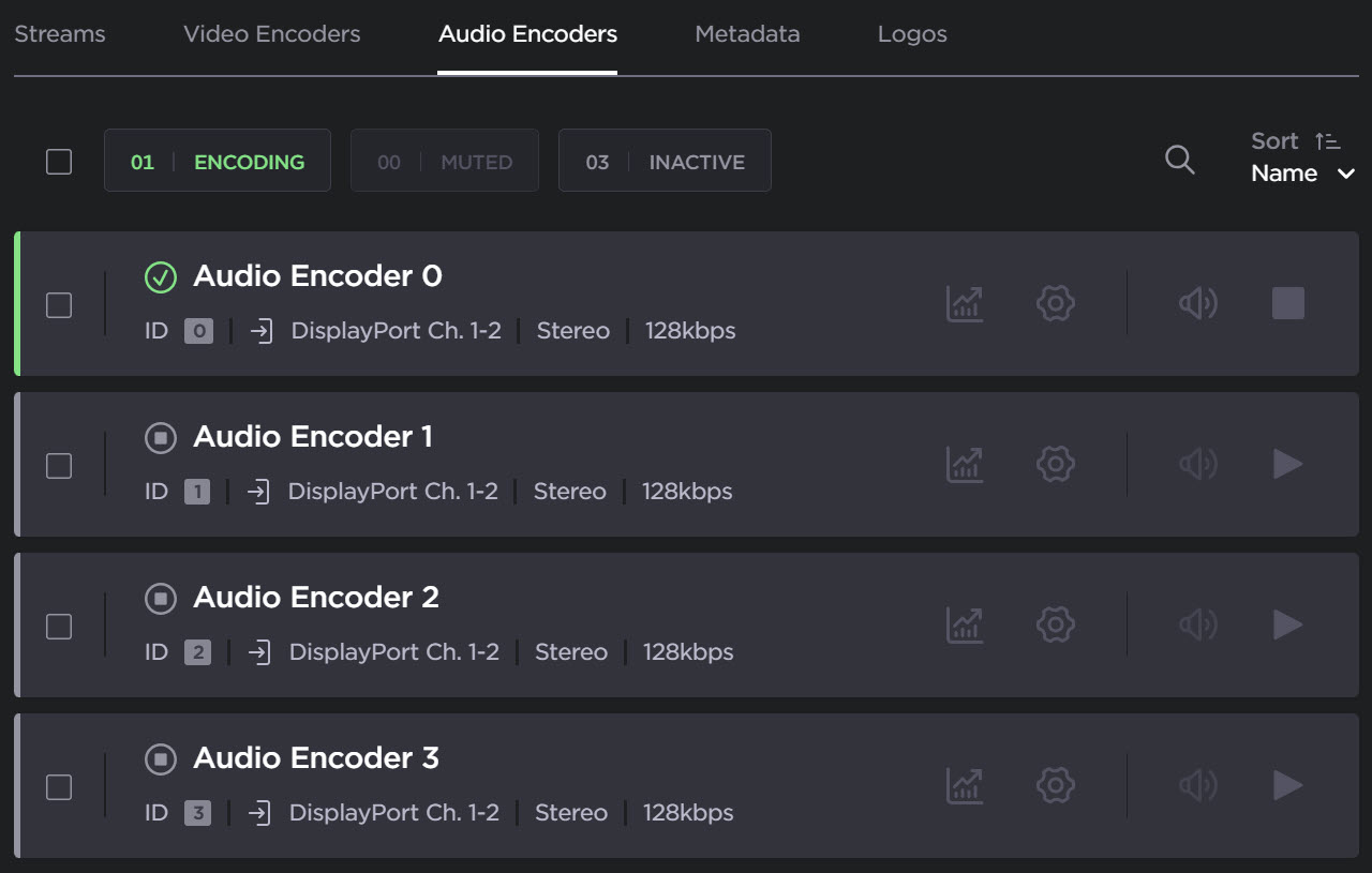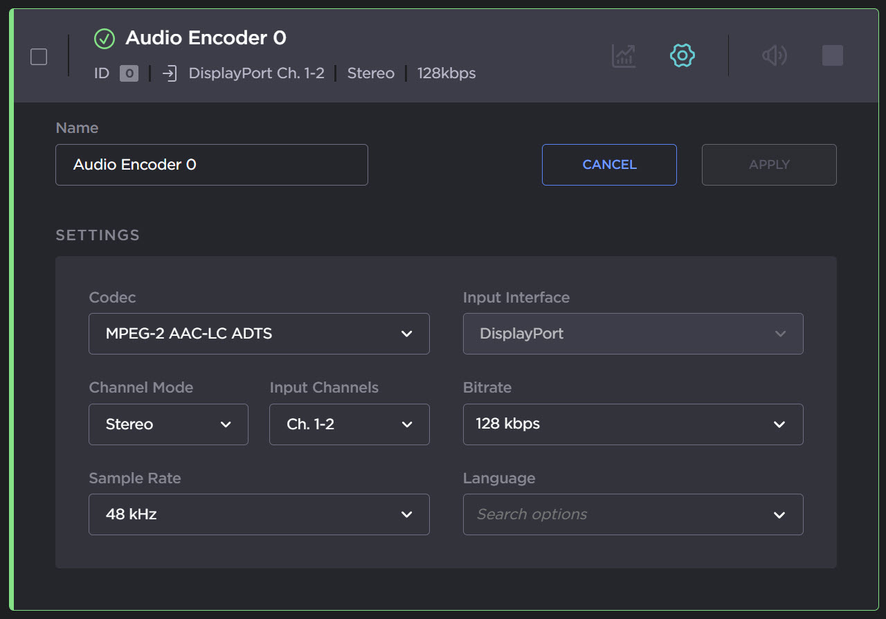 on the encoder panel to open the Audio Encoder Detail View.