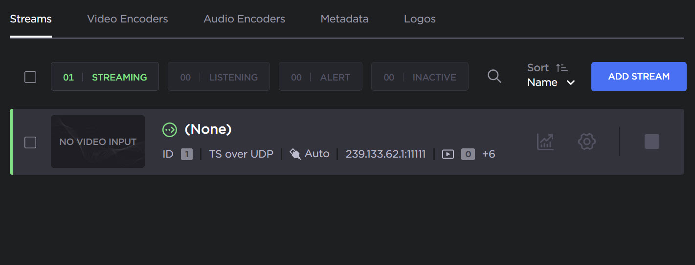 From the Video Encoders List View, click the Settings icon