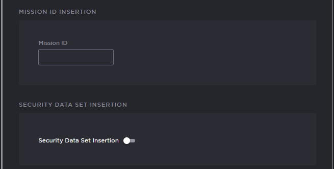 Mission IDTo configure Mission ID Insertion or Security Data Set Insertion, see Mission ID/Security Data Set Insertion.