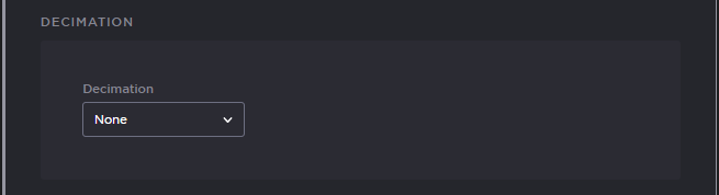 Decimation Settings:To configure frame-decimation to reduce the bandwidth used by the metadata service, select either a decimation factor or reference encoder from the Decimation drop-down list. See “Decimation” (under "HD-SDI Sources") in Metadata Settings.