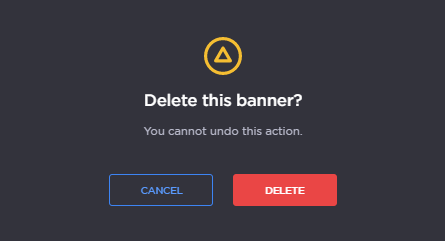 To delete the current banner click Delete. A pop-up message will appear:
