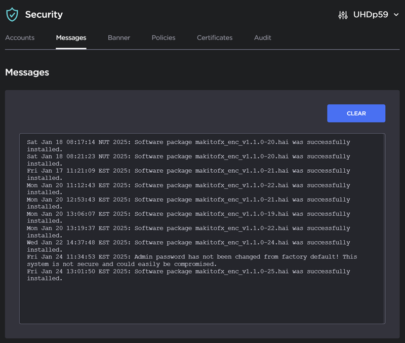 2. To delete the messages, click Clear. The following warning panel appears: