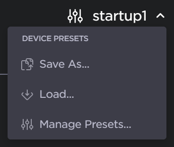 If the Preset Auto-Save function has been disabled, an amber warning indication will appear next to the Device Presets dropdown (in the header) on systems with unsaved configurations.