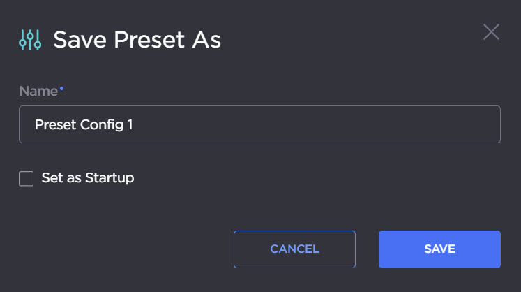 Check Set as Startup on to automatically begin using this preset at unit startup.