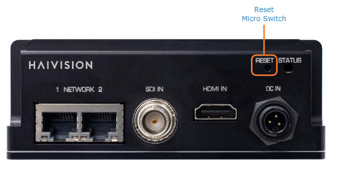 - Factory Reset: If the problem remains after performing a reset, it may help to restore the encoder to its factory default settings. A factory reset returns the encoder to the same settings it originally had when shipped from Haivision, including the factory default IP address, subnet, and gateway.