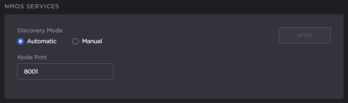For more information on Dual NICs, see Connect to the Network.Scroll down to the NMOS Services section to configure the NMOS settings.