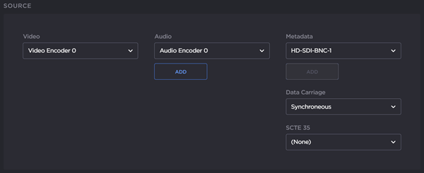 From the Stream Detail View, you can also view the video or audio encoder, or metadata source for a stream. You can view and modify these configurations under Source.