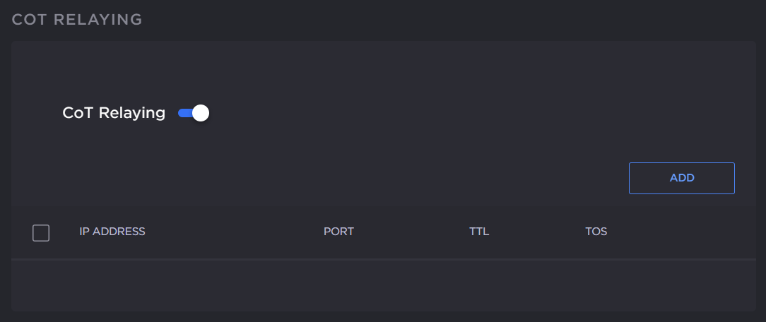 On the Metadata Detail View, if necessary, scroll down the page and toggle the CoT Relaying button to On.