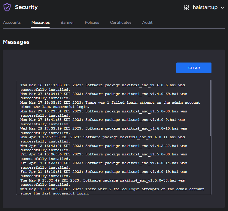The Messages page displays a limited number of important administrator actions recorded such as installation of a software package, failure to establish or maintain connectivity with a remote syslog server, Power-On Self Test (POST) errors, and other noteworthy events.