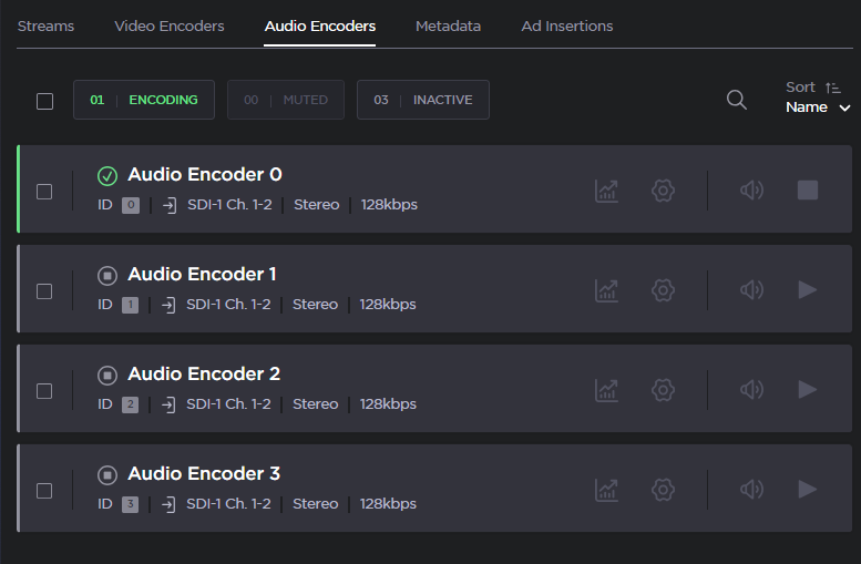 Select the Audio Encoders tab. The Audio Encoders List View opens.