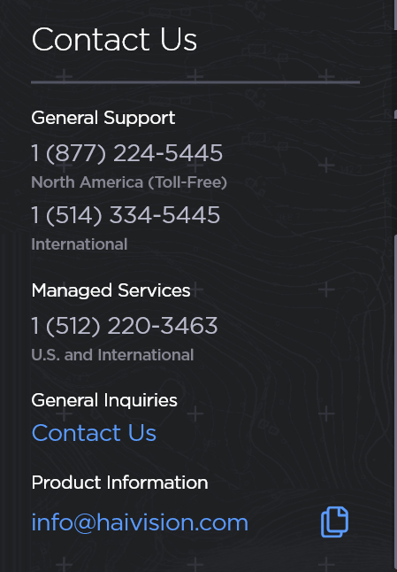 - Contact information for General Support, Managed Services, General Inquiries, and Product Information is also available from this menu.