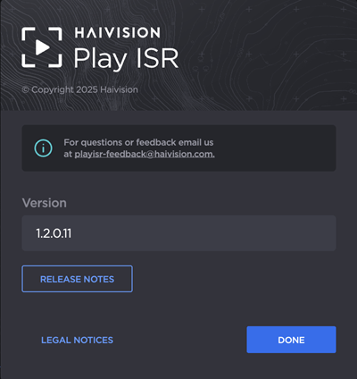 Scroll down to view the About information (including your player's Release Version), or to Send Feedback.