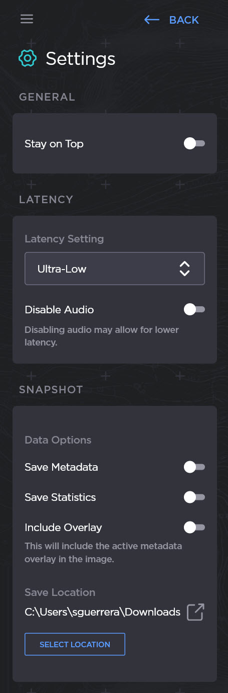 Settings to open the settings options. - From here, you can configure the General, Latency, and Snapshot Settings. See Play ISR Settings for details.
