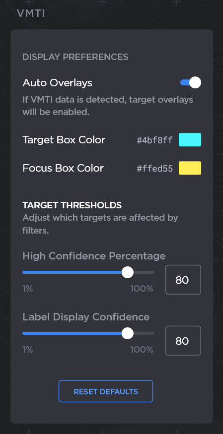 - Scroll down to access the VMTI display settings. For more information, see VMTI Settings.