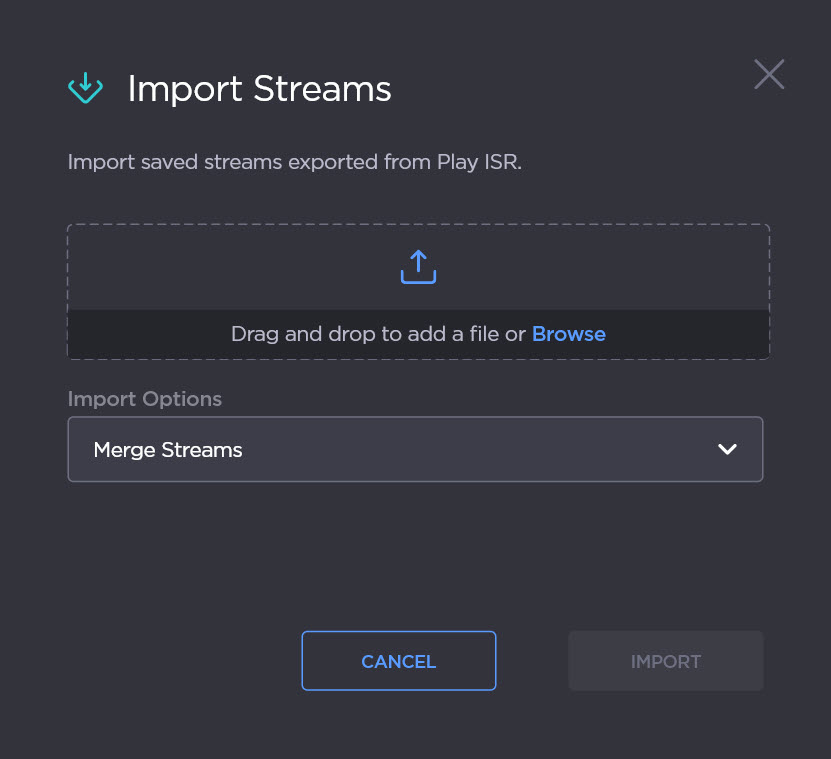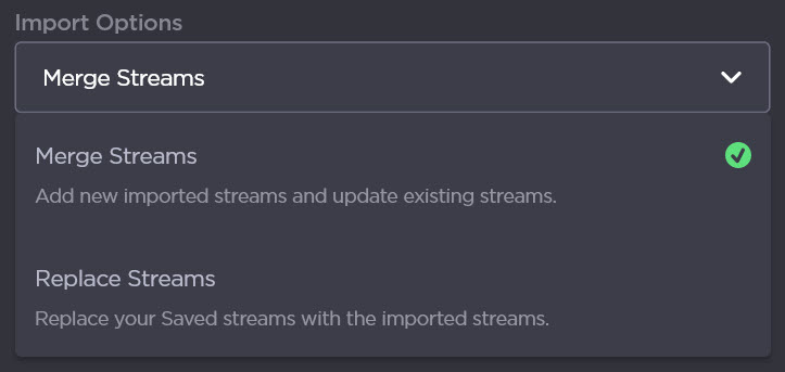 If you select Replace Streams, any current streams you have saved on Play ISR will be removed and replaced with the imported streams.