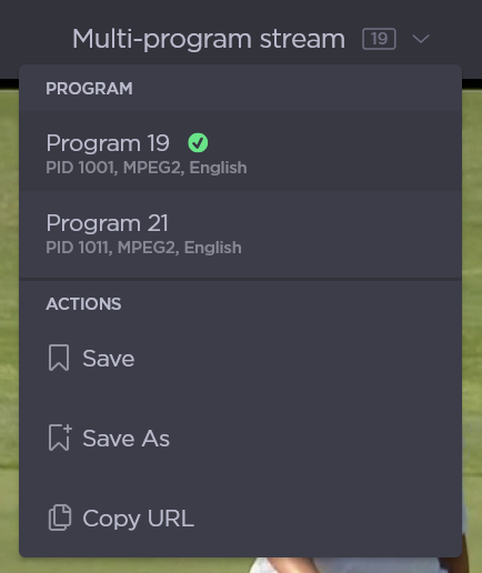Click next to the stream title to open the Program and Action dropdown menu. From here, you can: